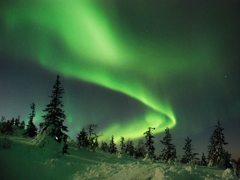 Discover the magic of the Arctic night on a guided Aurora Hunting Experience by Snowmobile Sled in Levi, Lapland.