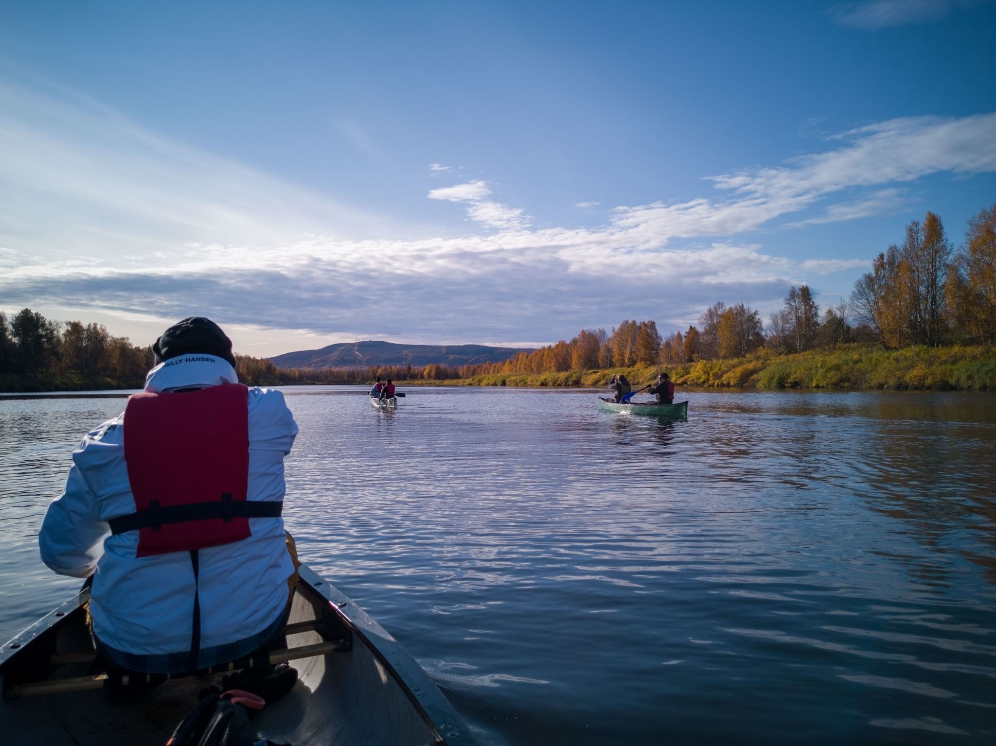 We start the trip from our office. We make a short transfer by car to the shore of lake Sirkkajärvi, from where we start paddling towards Levijoki. After the initial instruction, we will start the kanoeing trip and the guide will be with us for the whole trip. During the trip you will enjoy the lake and fell scenery, listen to the sounds of nature and get to know the waterway and its life from different perspectives. As you glide quietly and peacefully, you may also see wildlife you wouldn't encounter on land.