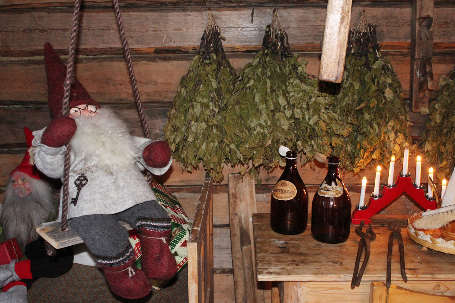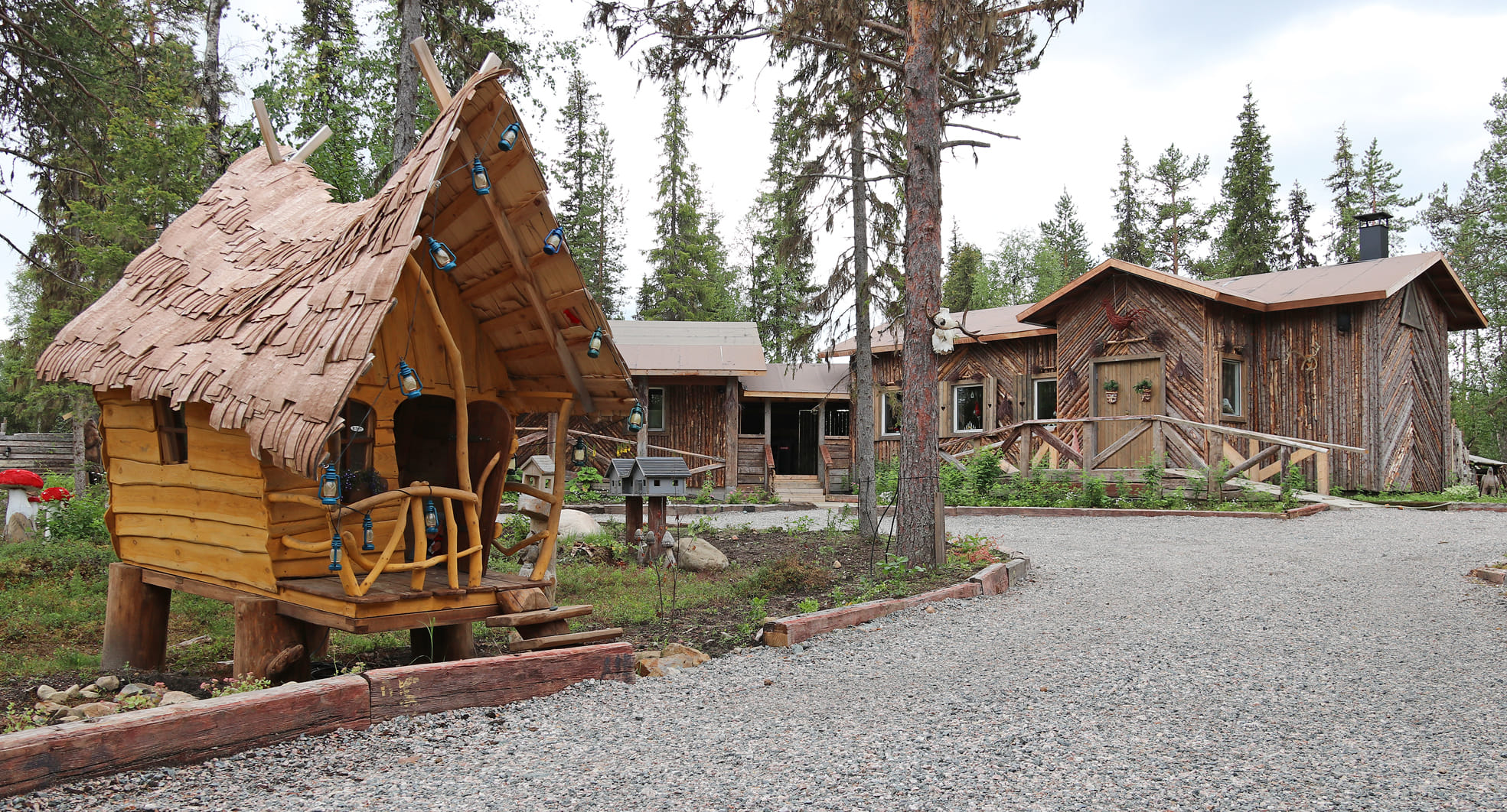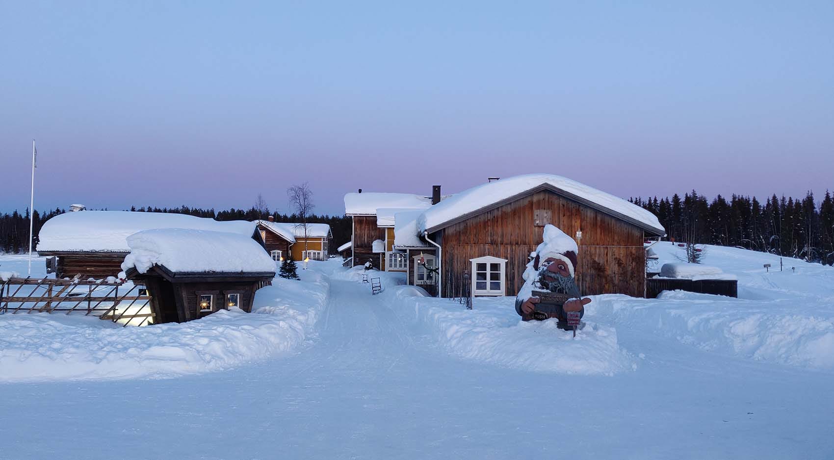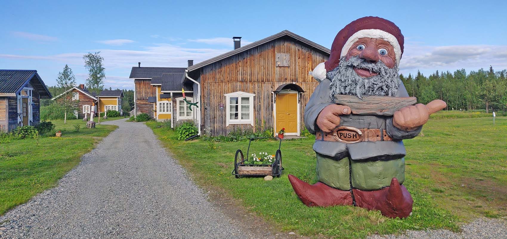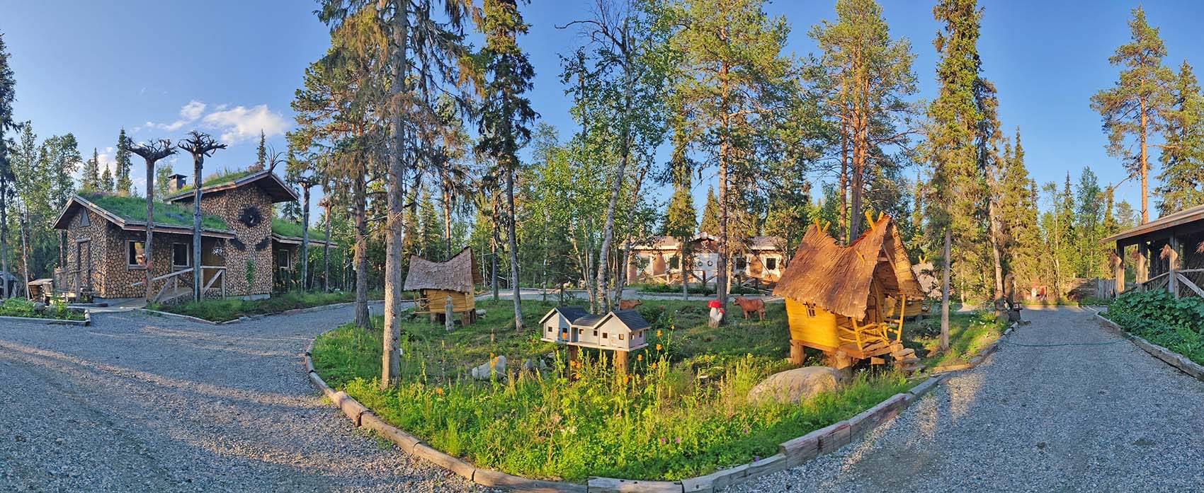 At the authentic lappish courtyard of Tonttula. You may have a peak to the Elves storehouses, The Temple, and Blacksmith´s workshop.