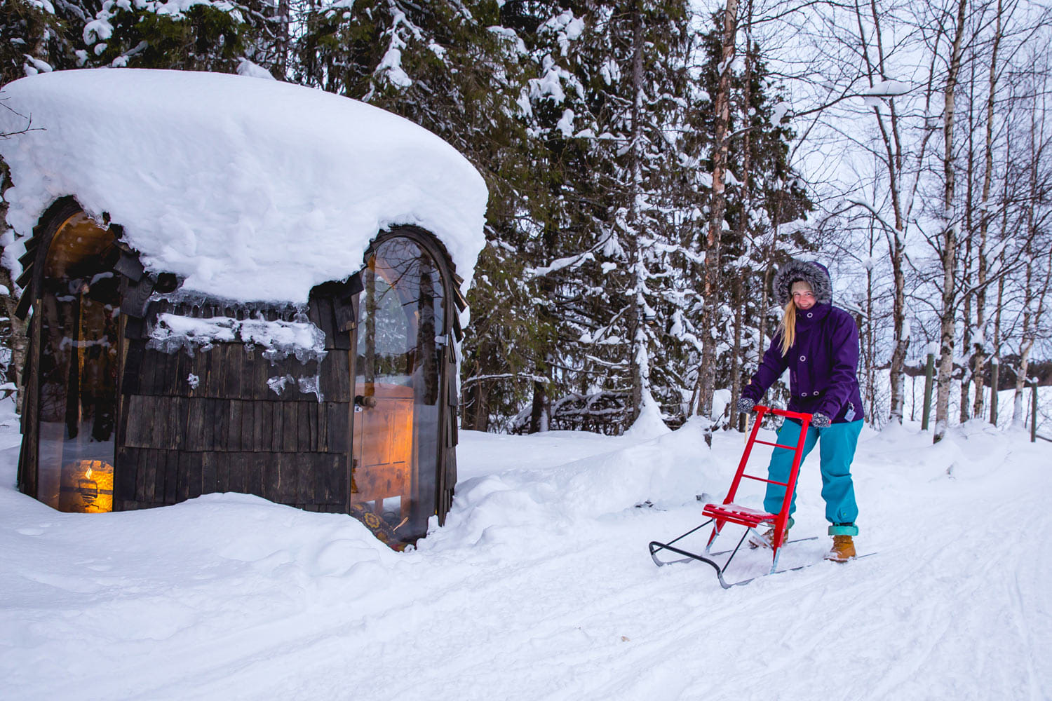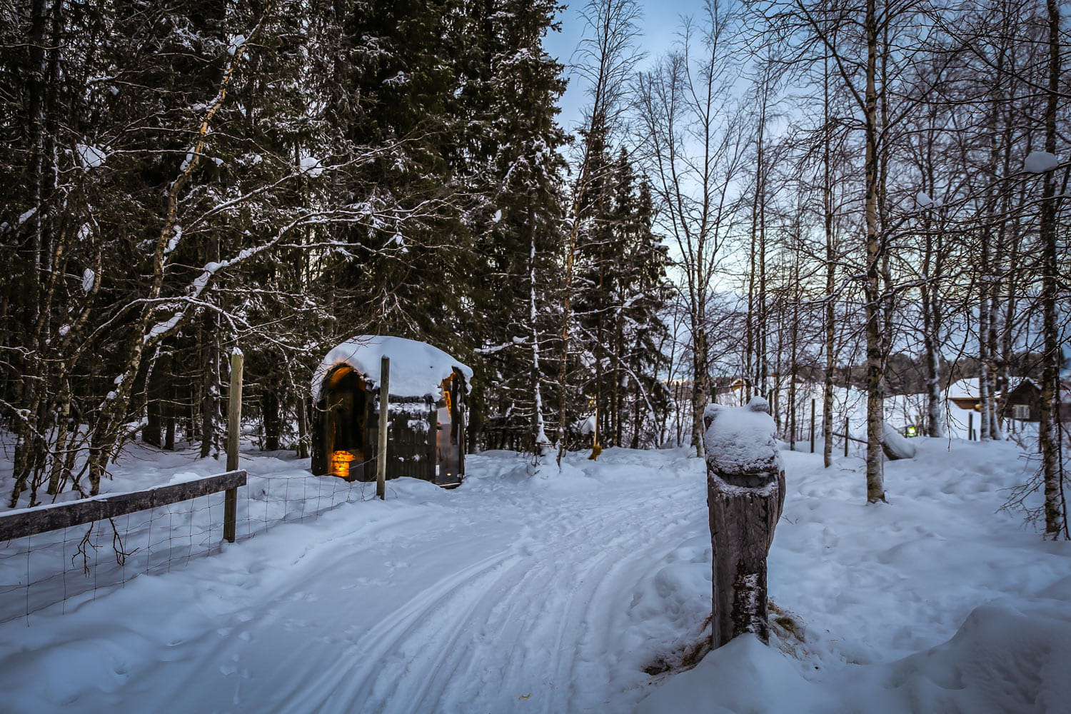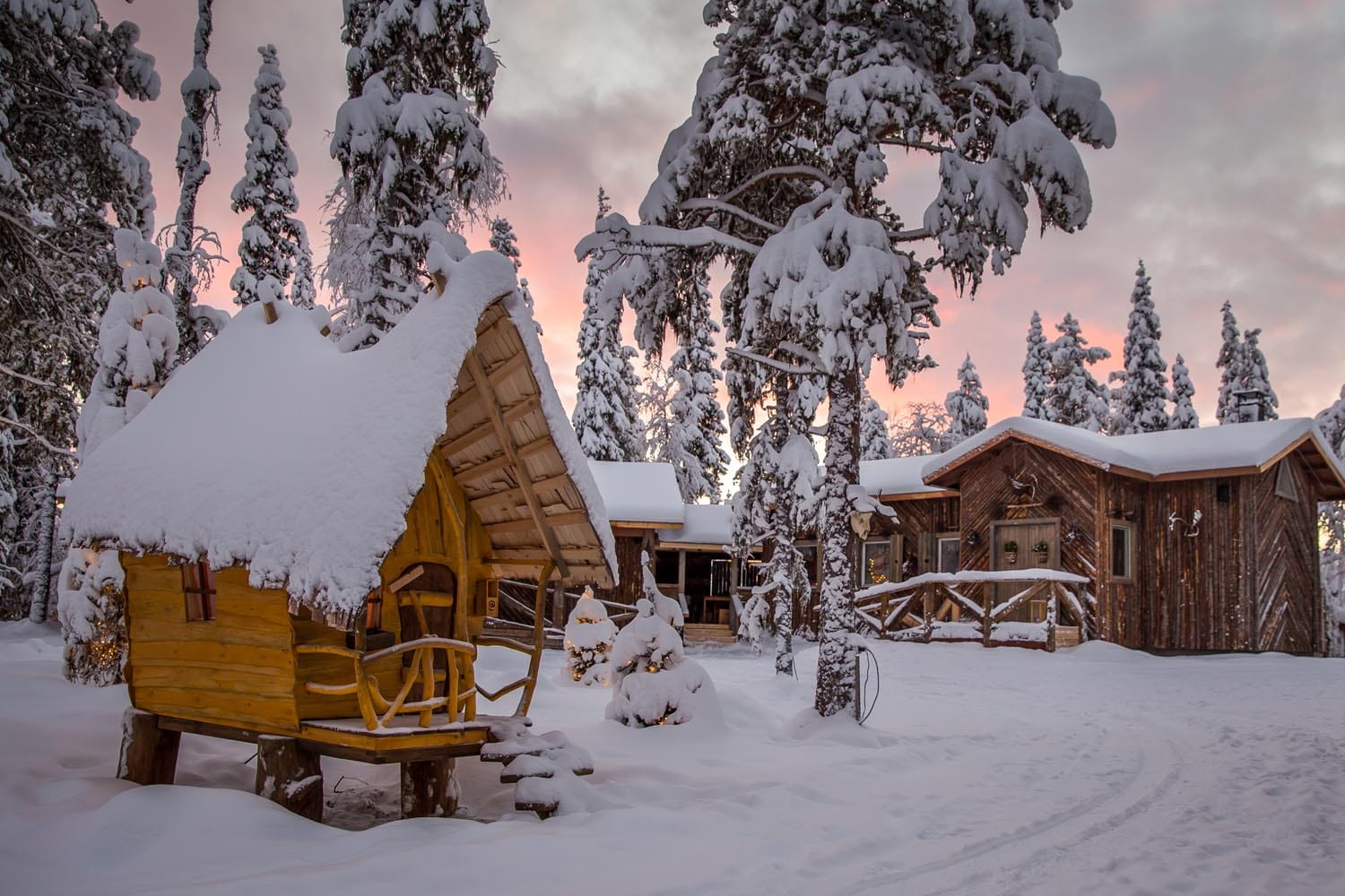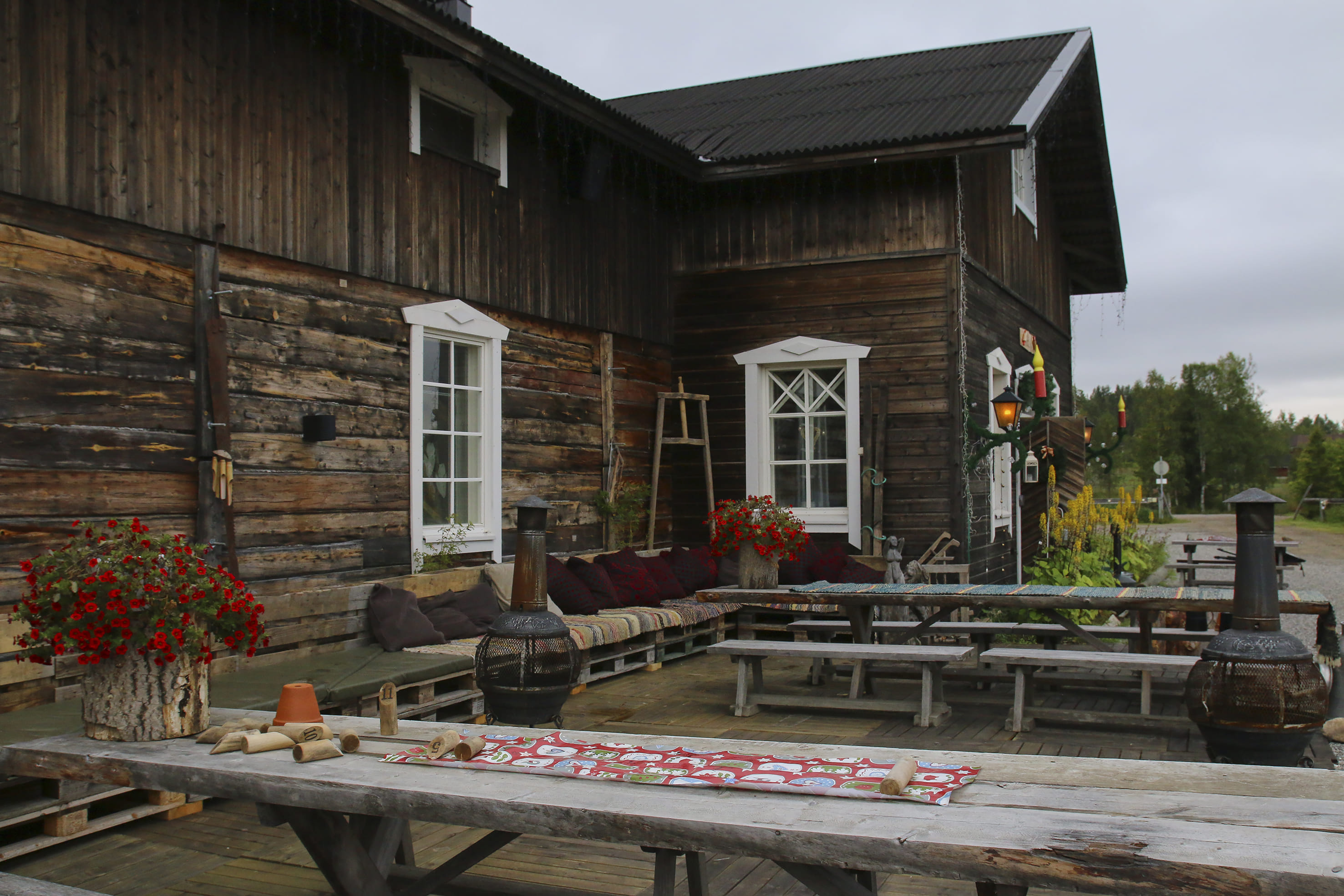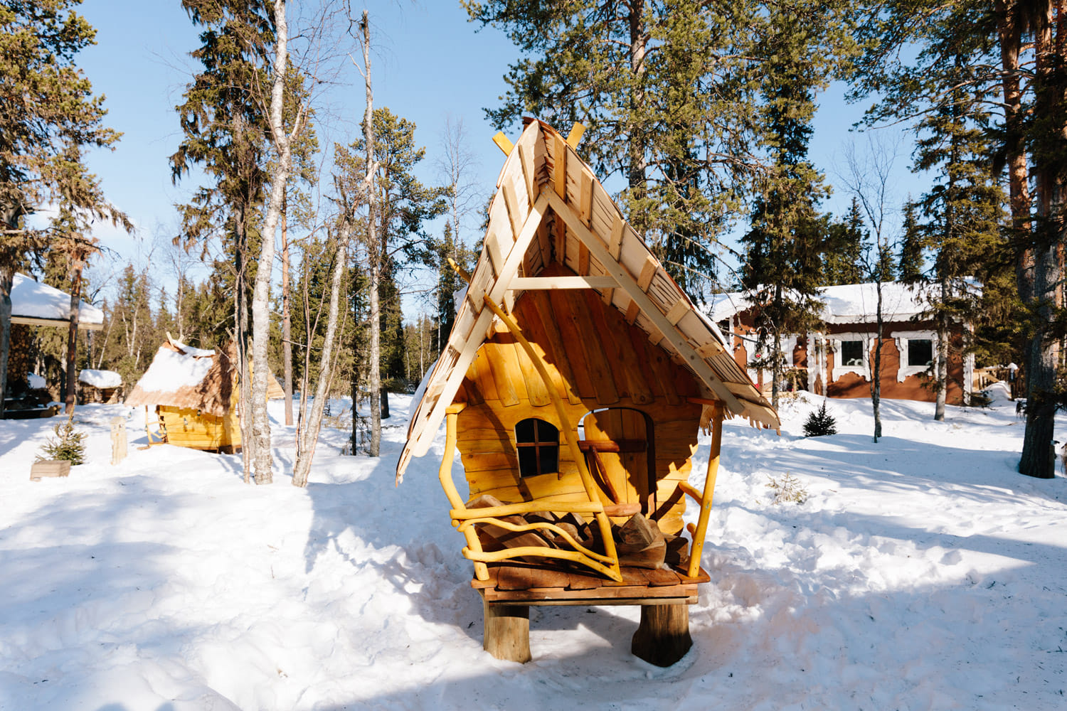 At the authentic lappish courtyard of Tonttula. You may have a peak to the Elves storehouses, The Temple, and Blacksmith´s workshop.