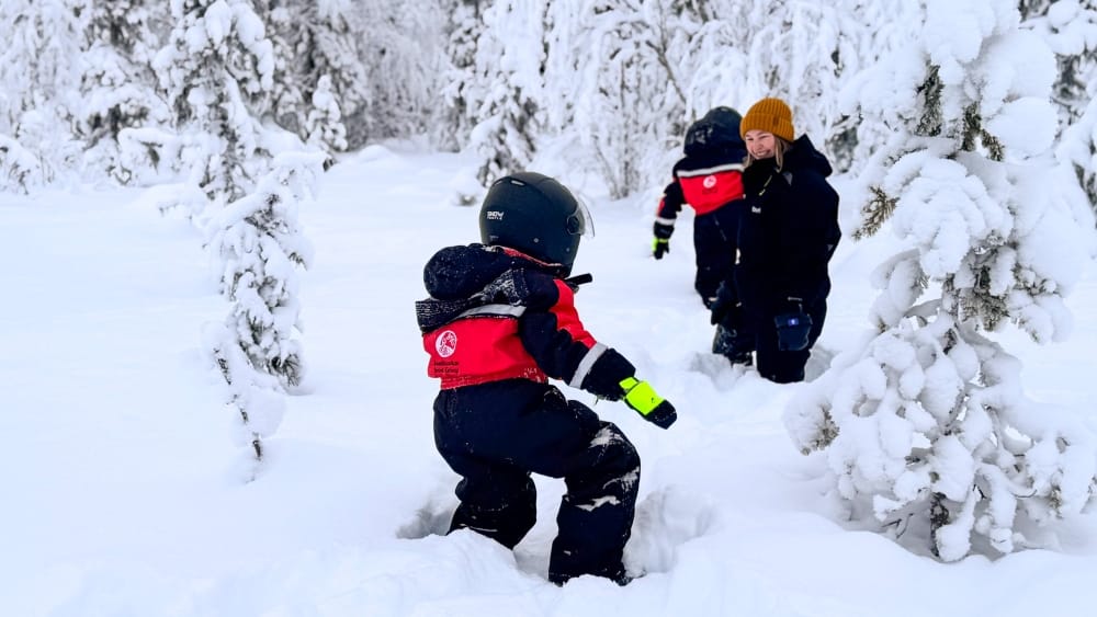 Mini snowmobiles are operated on a specially made private track under close supervision of STG guides. Speed is limited for safety. If several children of the same age participate, they will take turns in riding mini-snowmobiles. Every child can enjoy riding snowmobile during our family safari in Levi.
