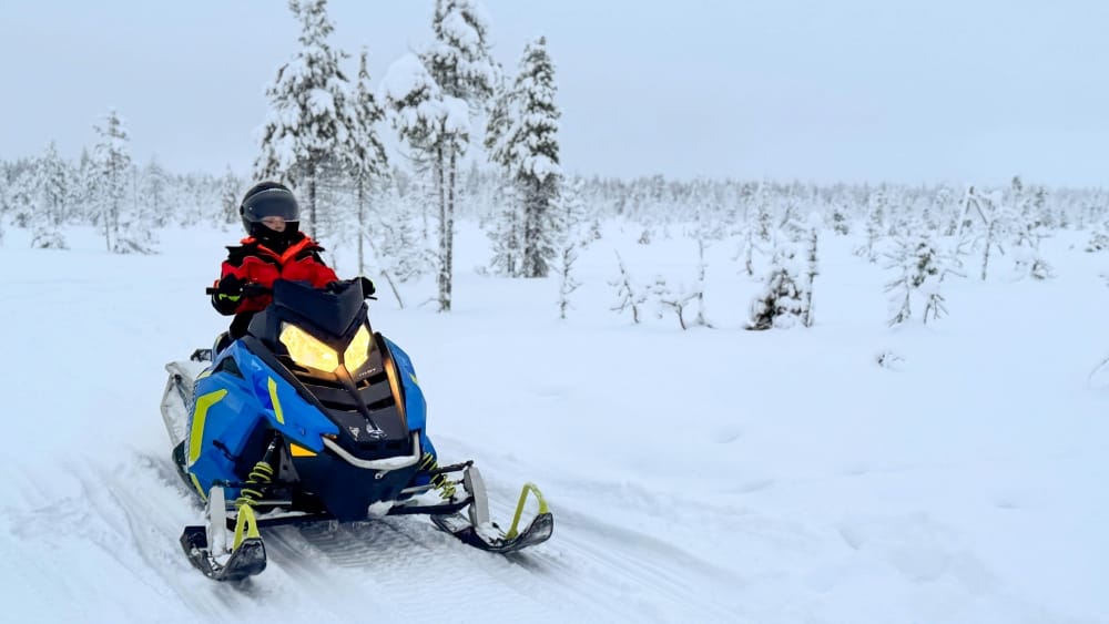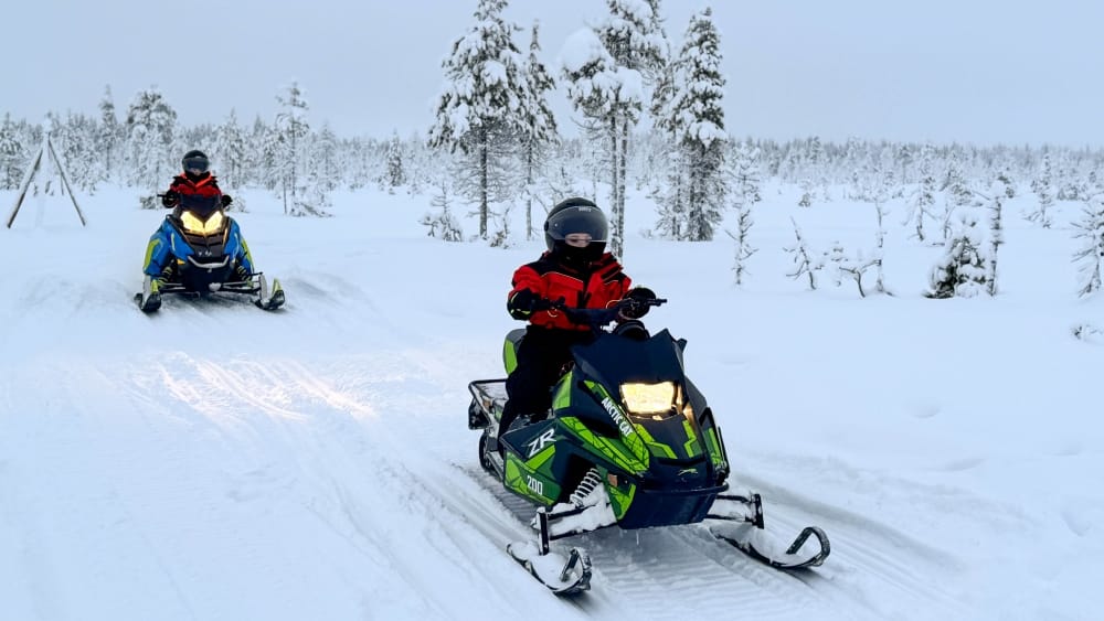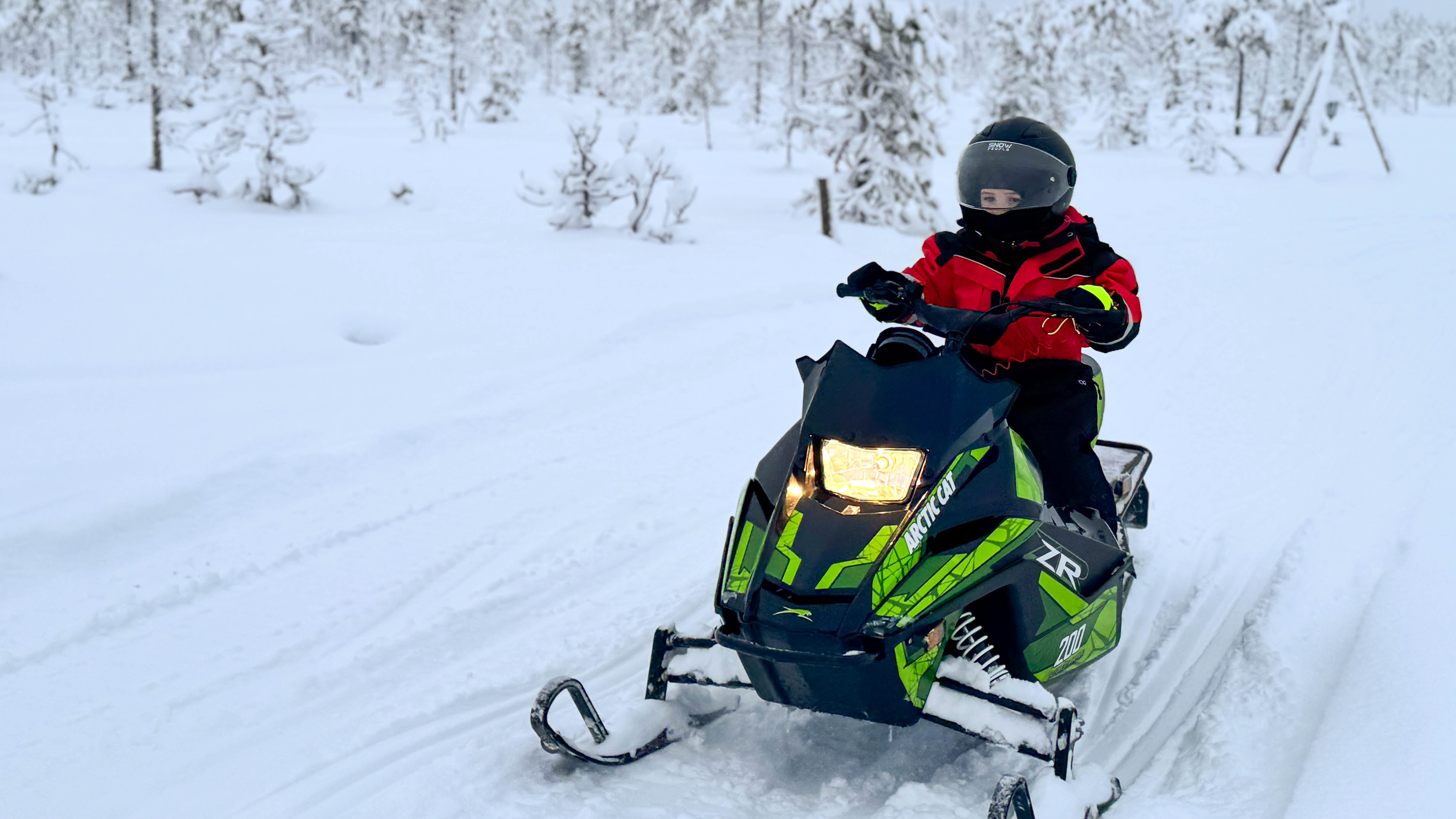 Family snowmobile safari - with mini snowmobiles for kids, Levi