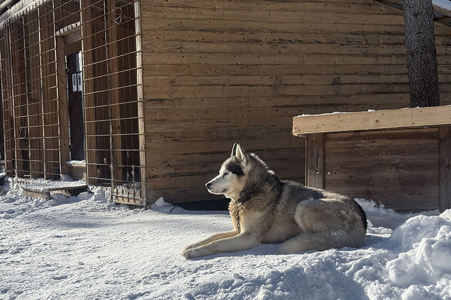 There’s also a special free-run area where some of the dogs can roam and play. Visitors are welcome to enter this space, pet and cuddle the huskies, and take relaxed, natural photos with them. It’s a unique chance to connect with the dogs in their own element.