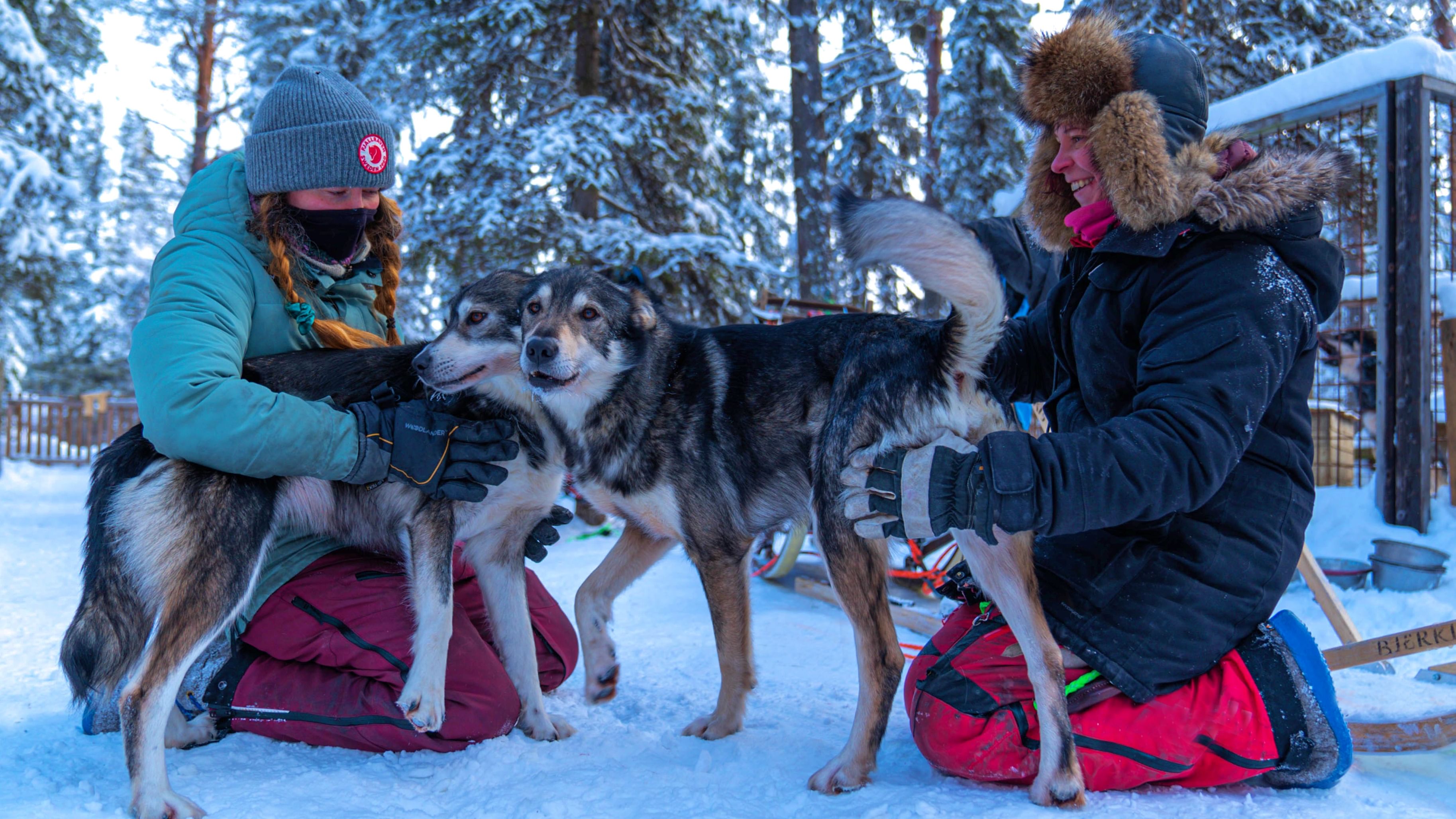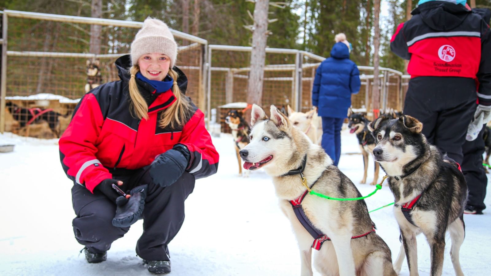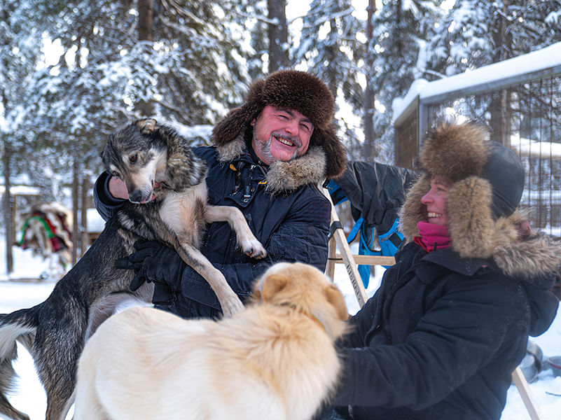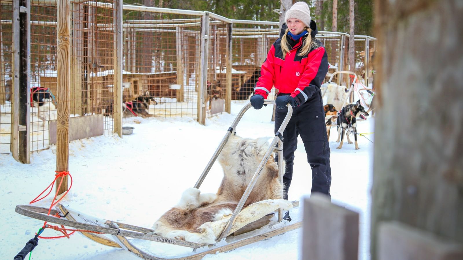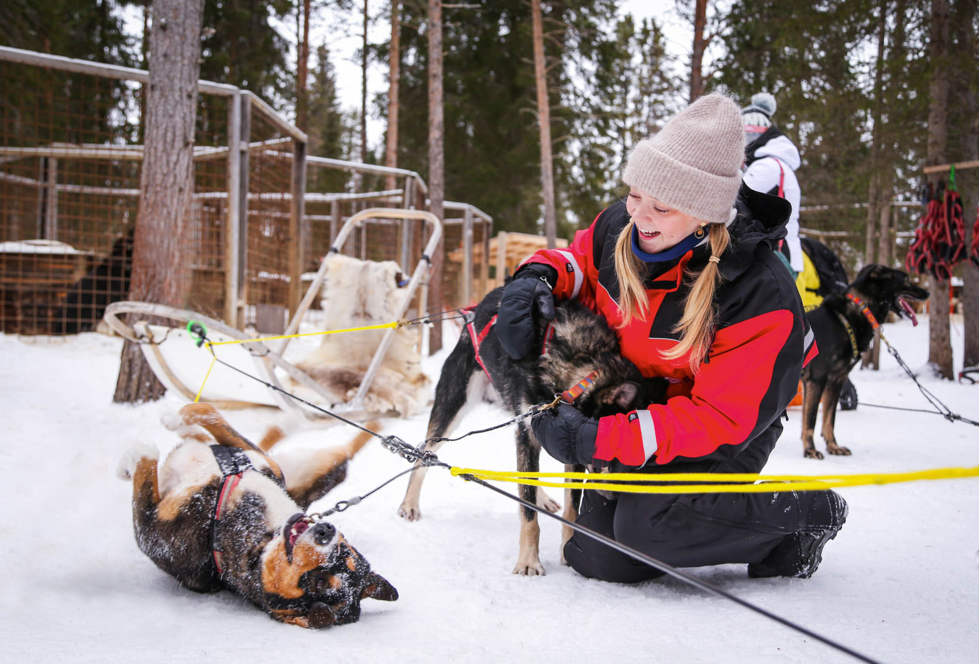 Our destination is a small family-owned husky kennel, located about 30 min drive from Levi center. In our kennel we care for animals’ well-being: we only take small groups up to 10 people per ride (5 teams), no more than 3 groups per day and the dogs get at least one day off in a week. Dogs are living a happy and healthy life in the kennel.