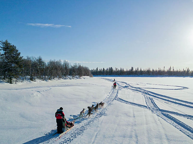 Upon arrival, we will start right away giving instructions for driving (mushing) the dog sled on your own and then immediately proceed to the starting point for the ride, where dogs teams are fully ready and anxiously waiting to start running. Focus on the thrill of riding your own sled to enjoy it. The best part of the mushing is not just the ride. It’s about building a bond with these incredible husky dogs. By the end of the ride, you’ll feel like part of the team.