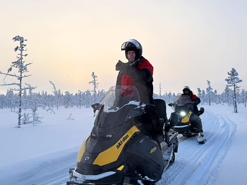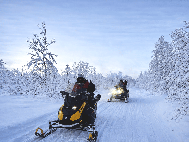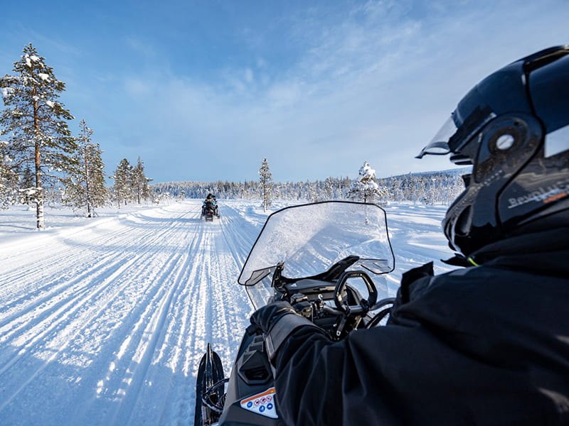 Speed and trails: The official speed limit for snowmobiles in Finland is 60 km/h. Driving is only permitted on marked trails. Please bring your driving licence — police patrols operate on snowmobile tracks.