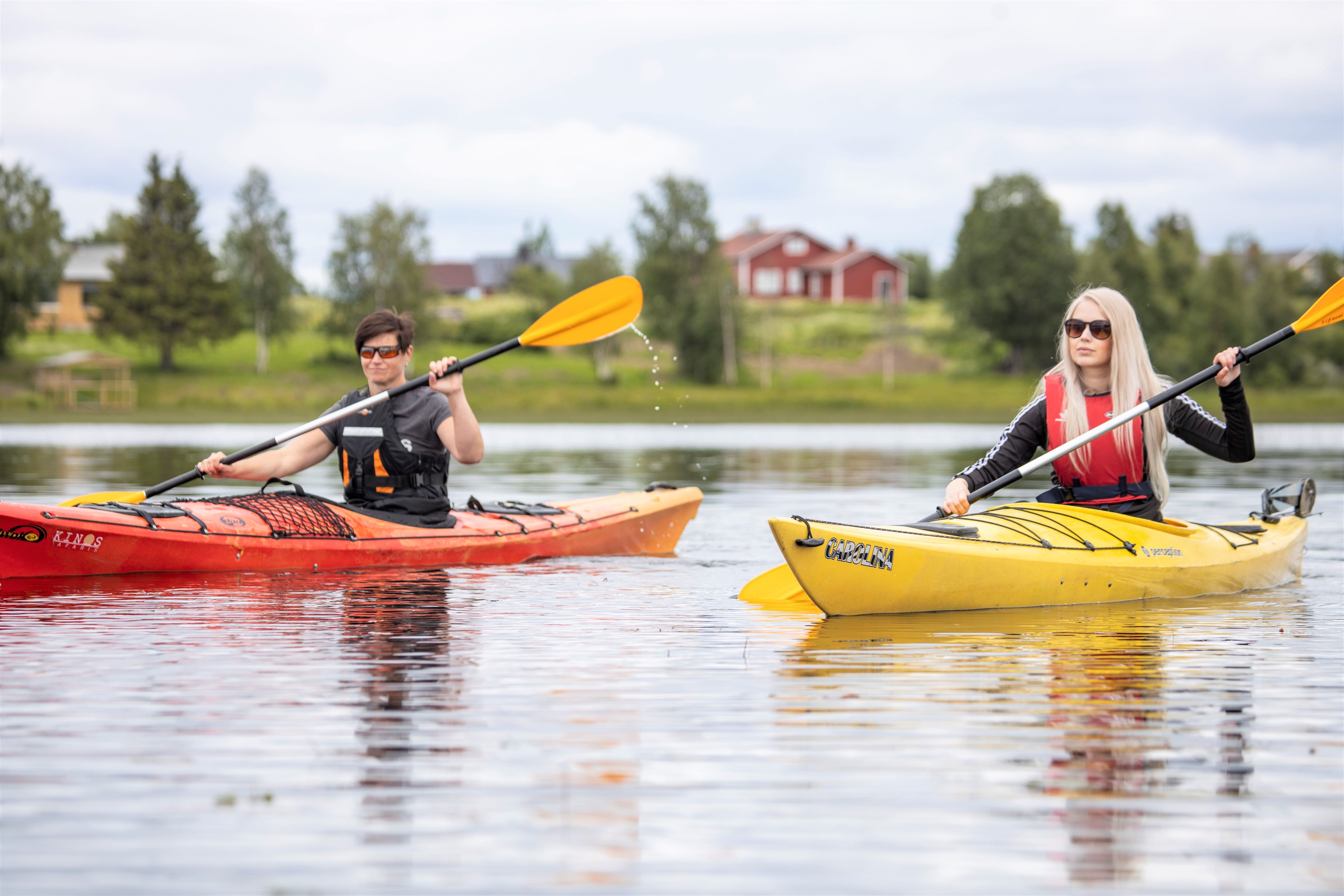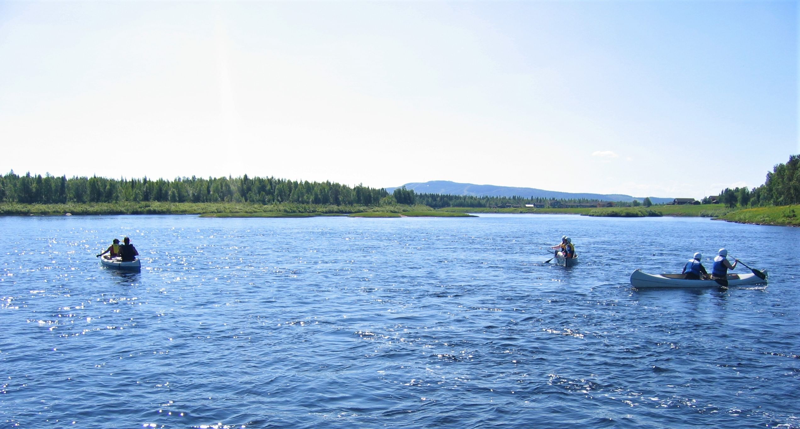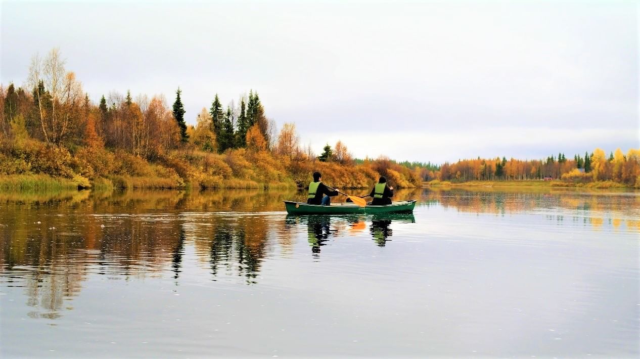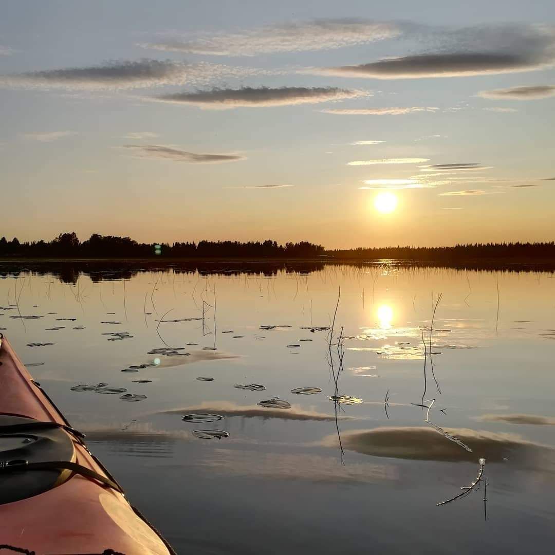 During summer and fall we organize guided canoeing safaris at the lake Sirkkajärvi and Levijärvi . These safaris are suitable for beginners and for the whole family. The location is beautiful, and you will get to admire the Levi and Kätkä fell as well as forest and lake sceneries. During summer you will see midnight sun and later in the fall sunsets and northern lights. After the safari we will enjoy a cup of coffee on shore on our ferry or in our own Lapp tent.