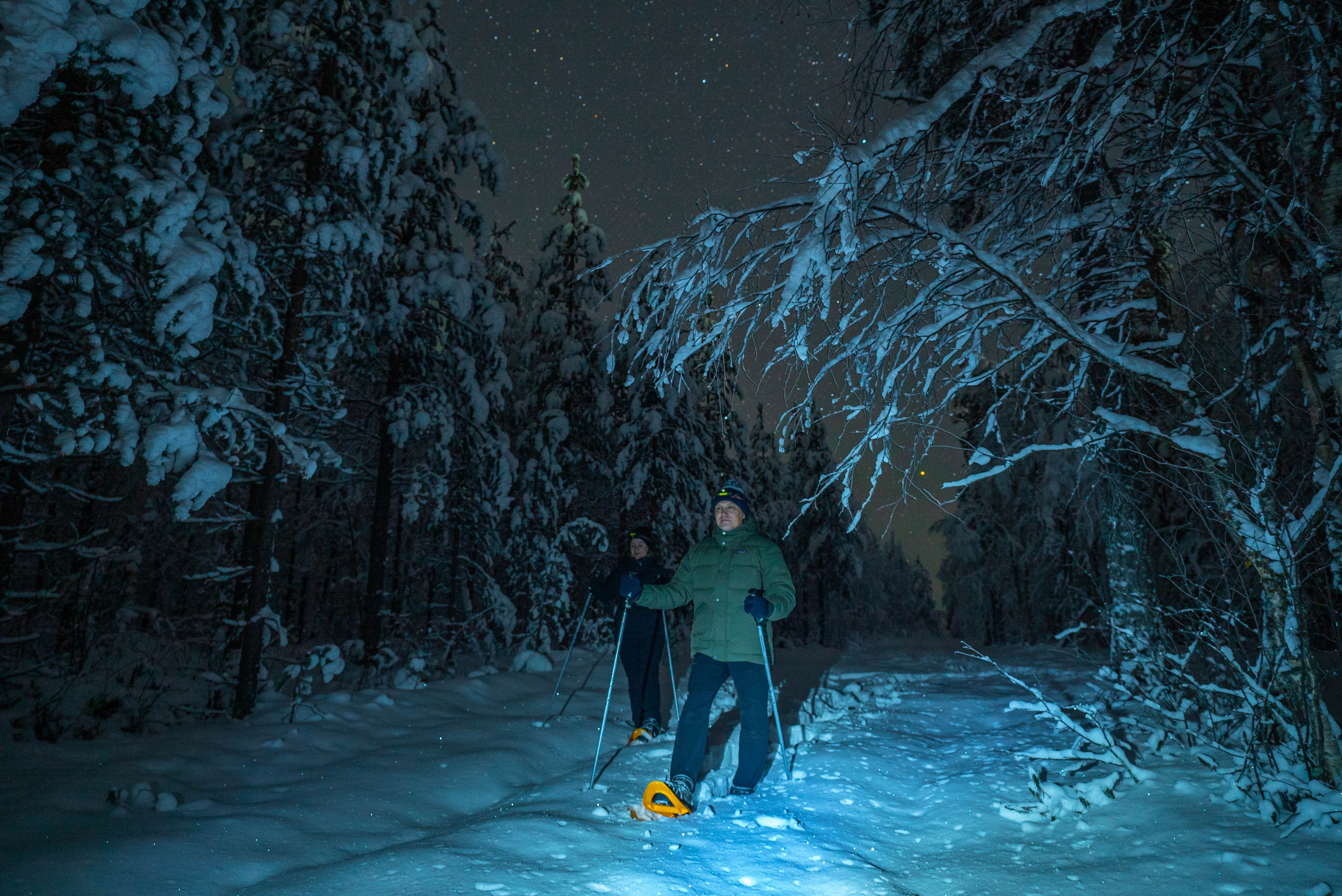 Evening Snowshoe Hike from Levi Fell Summit to Village — With a Chance to See the Northern Lights