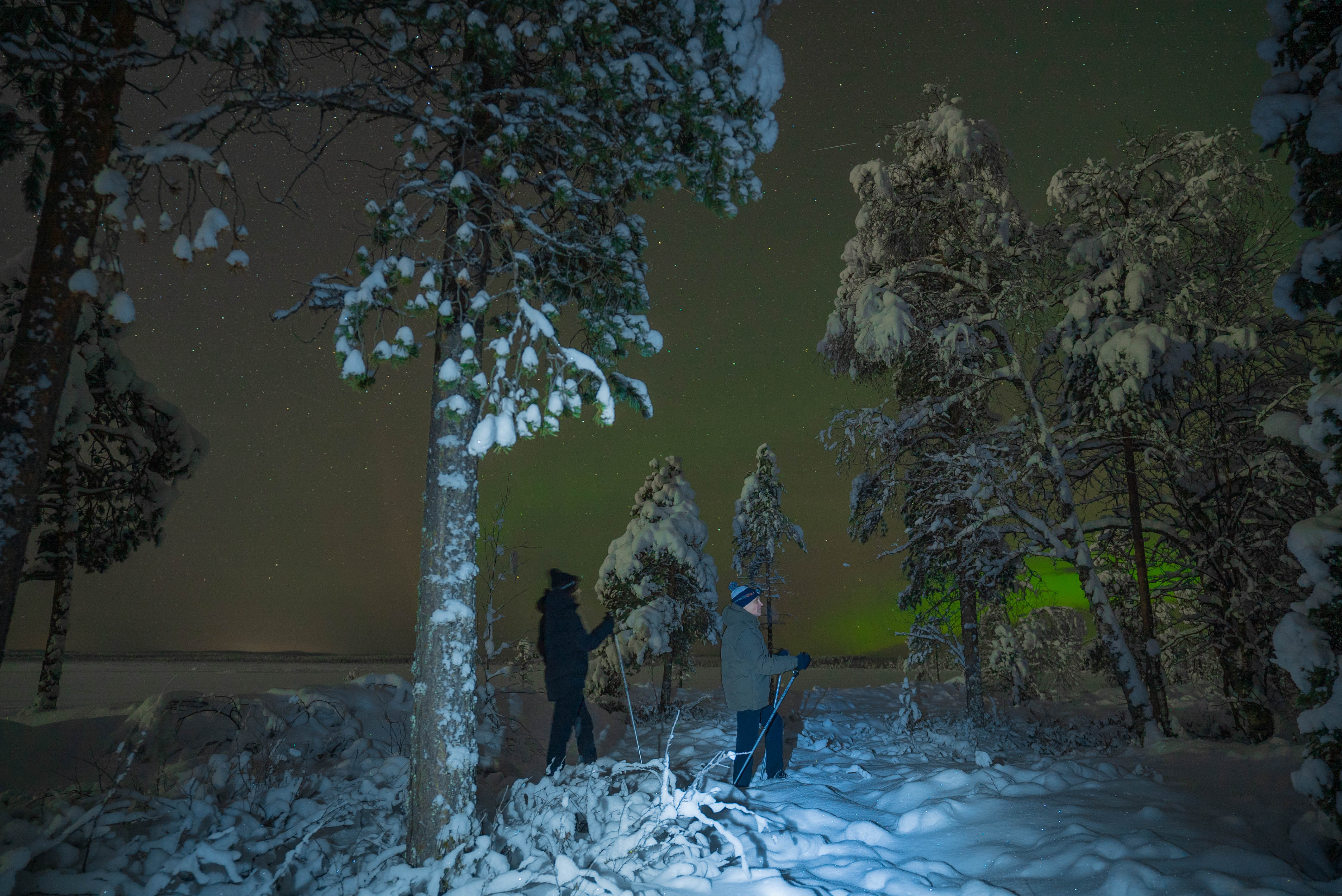 Even in cloudy or snowy weather, the experience remains atmospheric. The snow-muted silence, crisp night air, and glow of your headlamp combine into a peaceful and immersive Arctic experience.