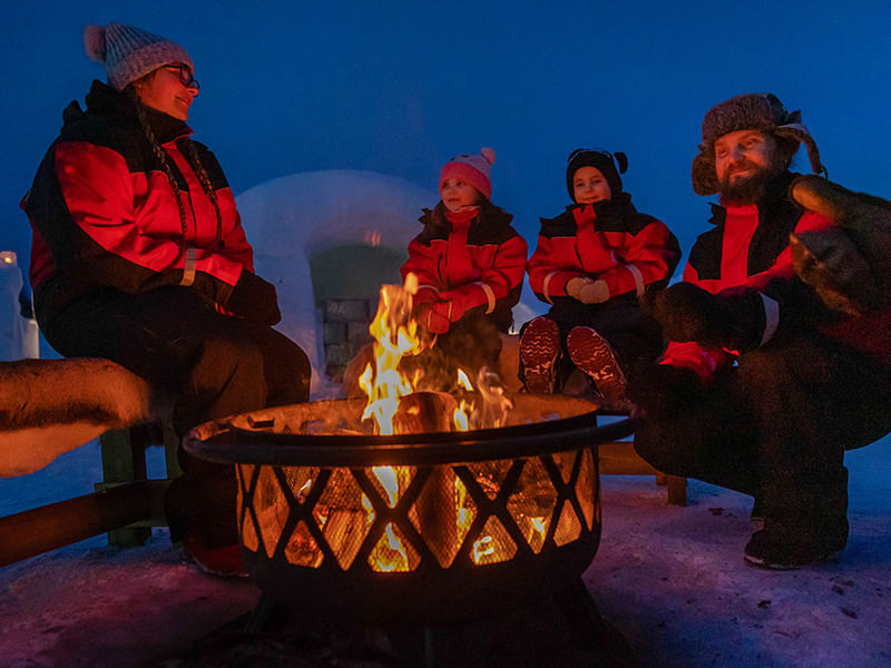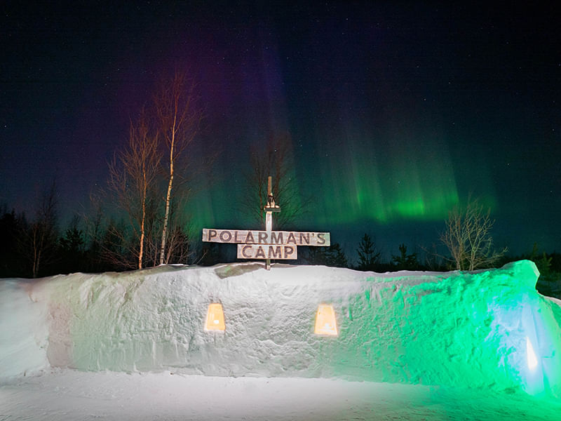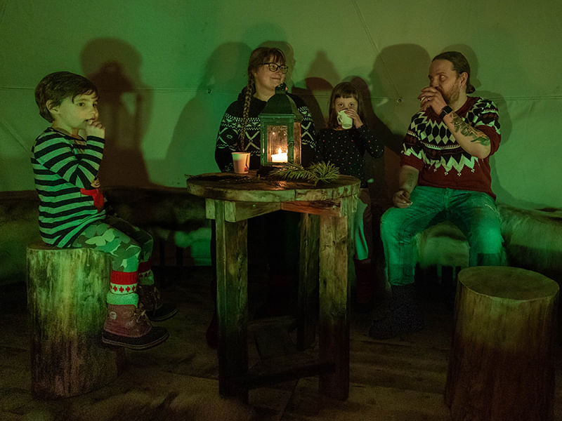 Our transfer from Levi will take about 10 minutes. Upon arrival, the Polarman will welcome you inside the private camp area, get you seated at the open fire on the reindeer skin and introduce you to the amenities and attractions included in your entrance ticket.