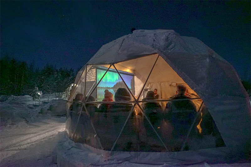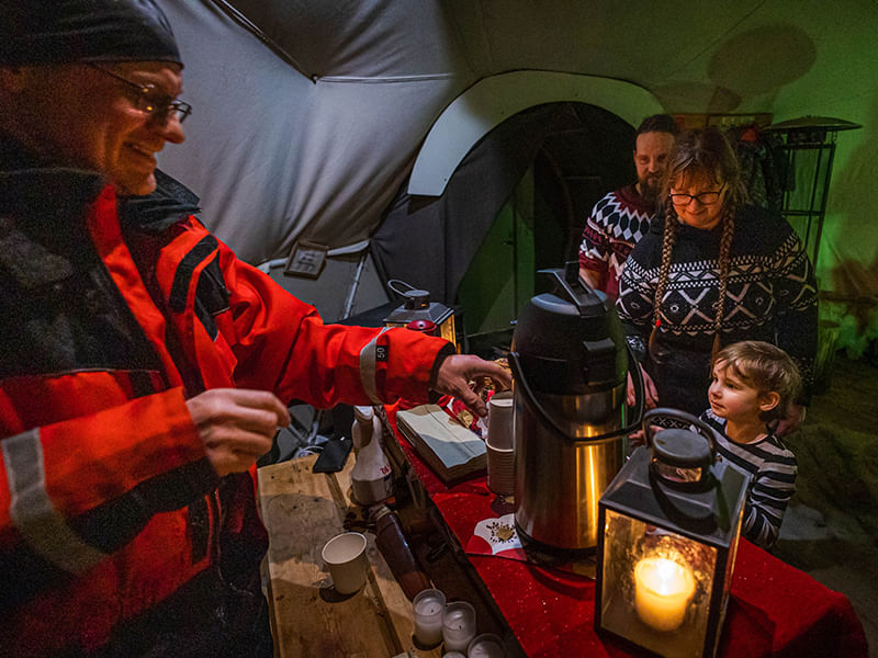 If you feel cold at any time during the program, you can always find shelter and warm up inside the Aurora dome, have some more hot drinks and more cookies.