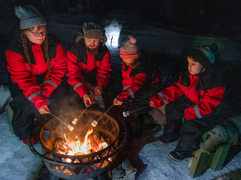 Finally, it’s time for an outdoor Lappish BBQ experience! Sit comfortably around the open firepit while we offer you sausages on a stick to grill on the fire, followed by marshmallows.
