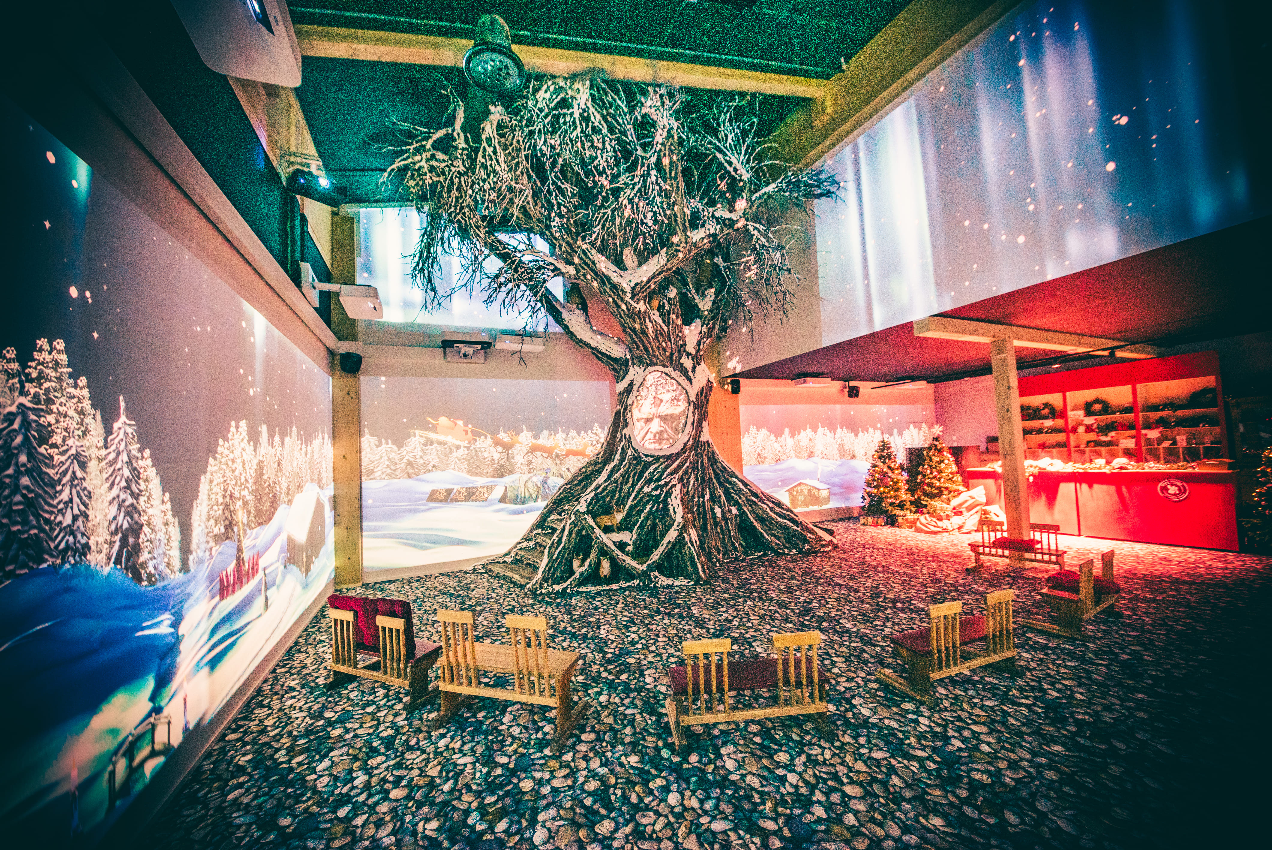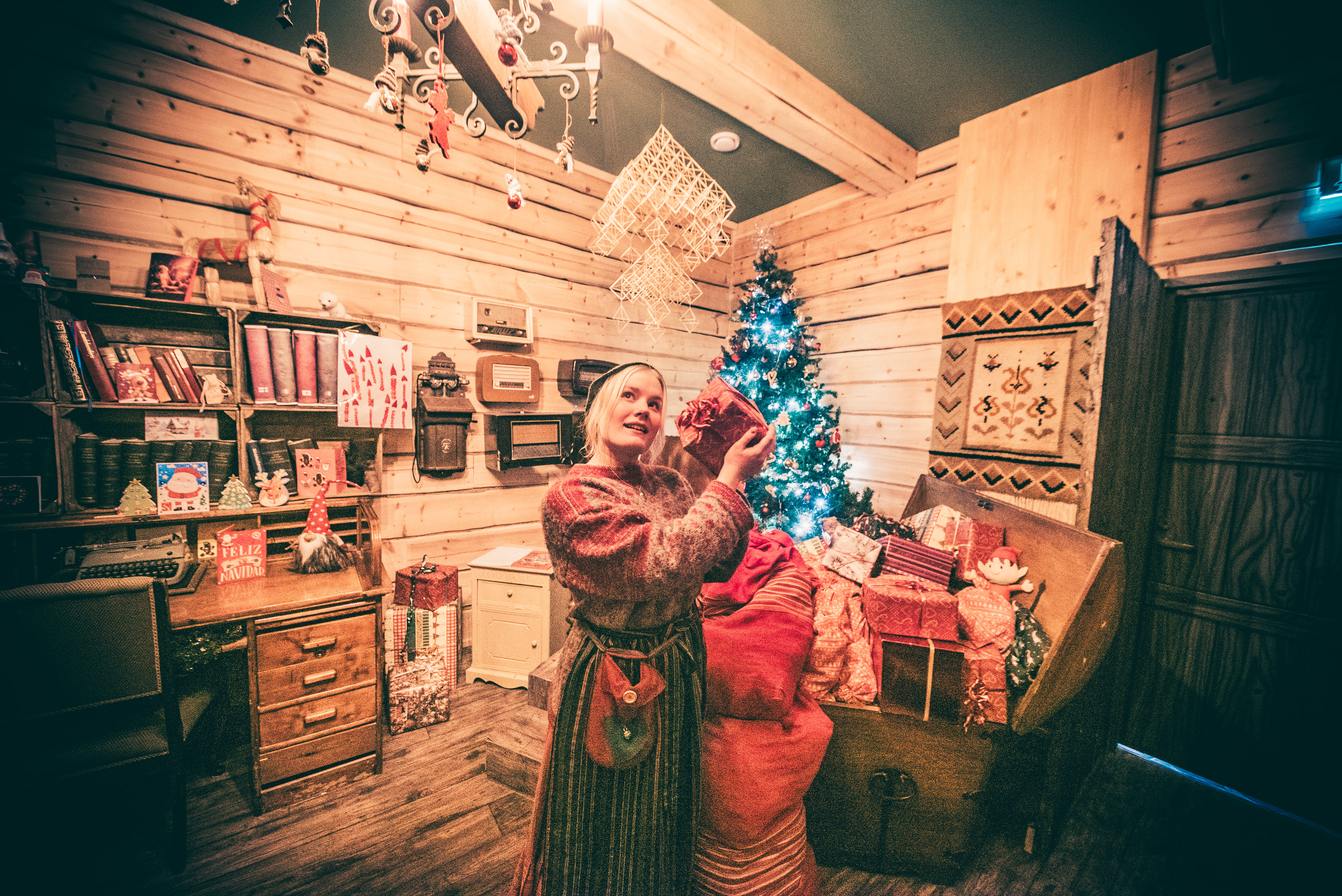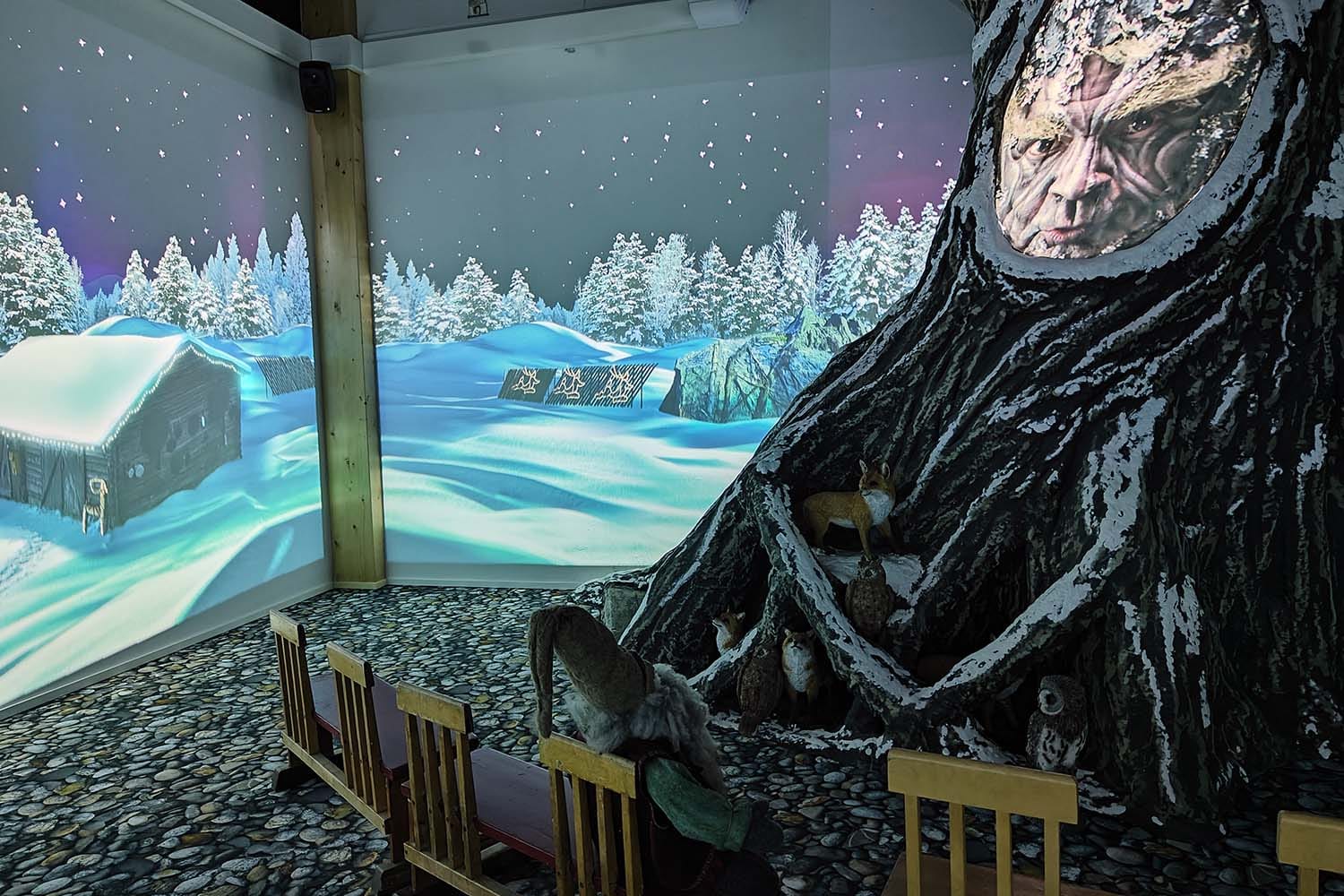 Step into Santa Claus's new home and explore Santa's office and kitchen. The bedroom shelves are filled with Christmas-themed literature, and in the wardrobe, Santa keeps various outfits he needs for traveling around the world. Find the secret door that leads to the history room, where you can learn about the fascinating history of toys. The journey continues to an audiovisual exhibition space, where imagination comes to life through the stories of a talking tree.