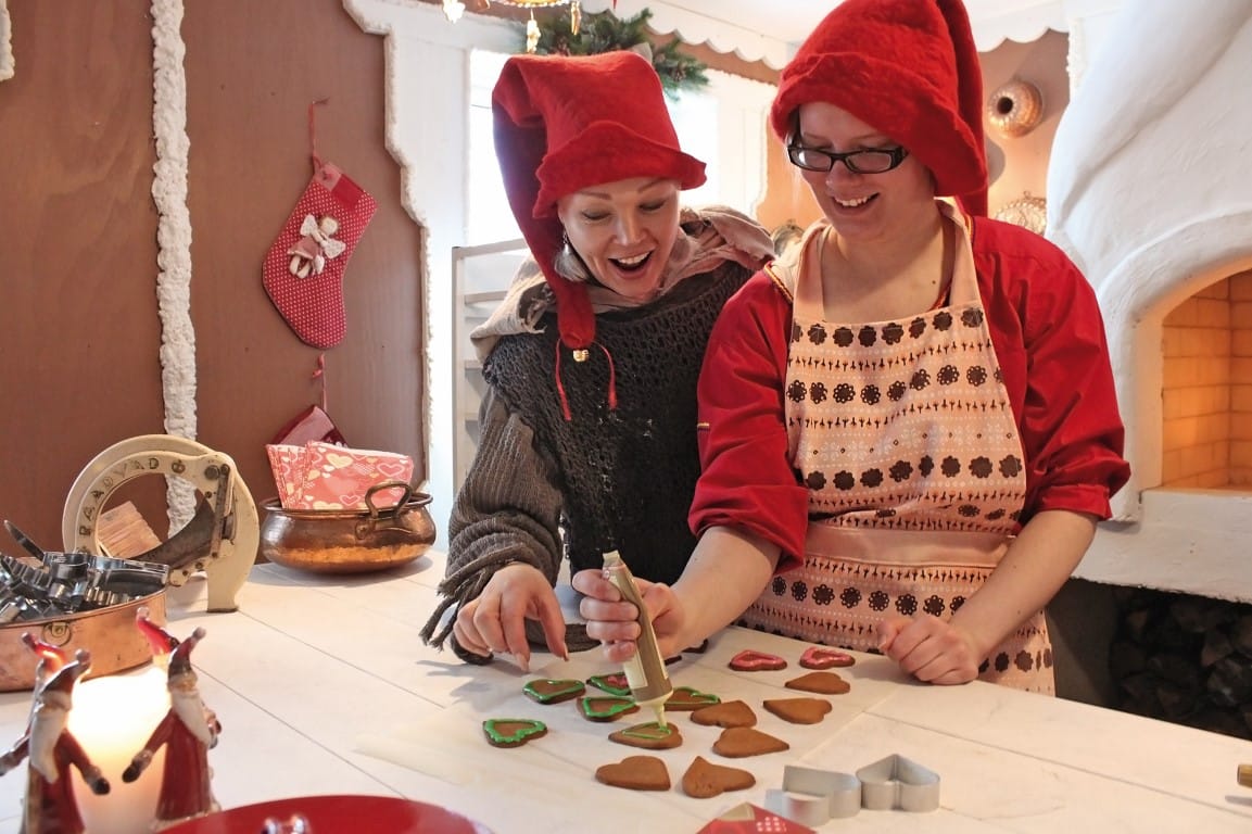 Follow the Elves´ Paths marked on the map, which will eventually lead you to Elves` Hideaway. In the Elves` Hideaway, you can explore the Seita Stone, Gingerbread House, Elf School, and the Hut of Knowledge. The elves are waiting for you with activities: you can bake gingerbread cookies in the Gingerbread House and participate in crafts at the Elf School.