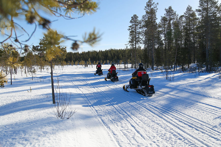 The tour starts with a pickup from Levi and transfer to our safari house. There, you’ll gear up with thermal equipment: a snowmobile suit, boots, mittens, helmet, balaclava, and woolen socks — all designed to keep you warm and dry.