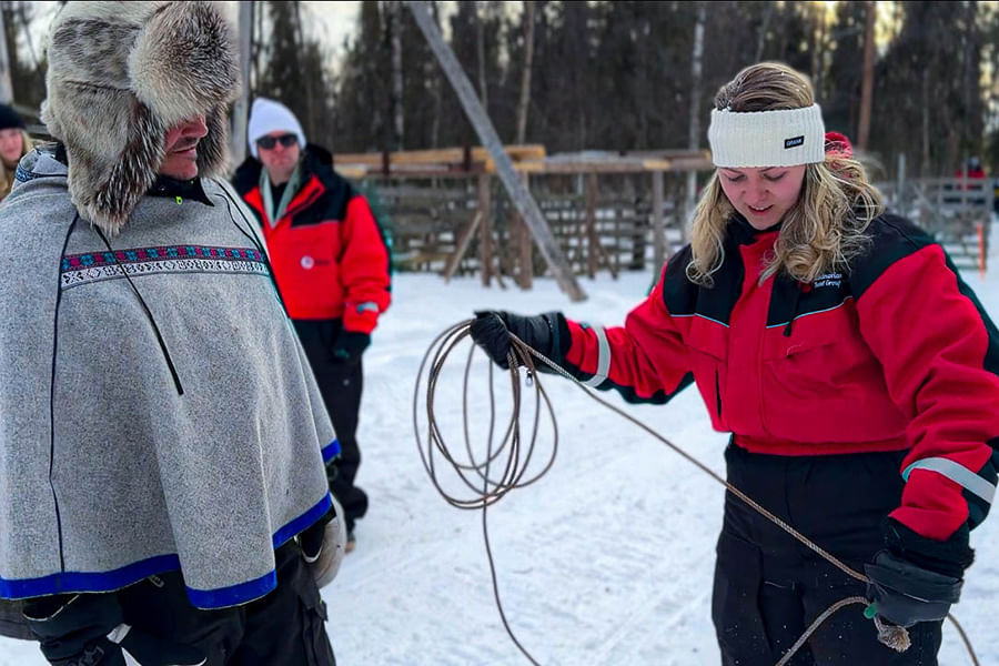 Before departure, try your hand at traditional lasso throwing — always a guest favorite. You’ll then receive a personal diploma as a Reindeer Herder’s Assistant.