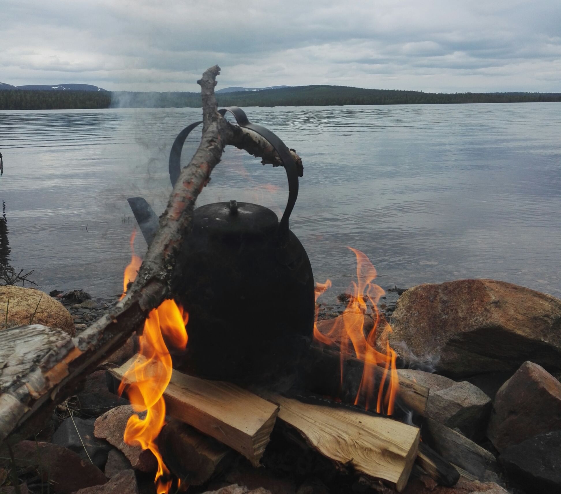 During the hike you can explore the nearby forest and the ice at your leisure. You can pick berries and mushrooms, go swimming, rowing or just sit and enjoy the peace and quiet of a Lapland summer while admiring the mountain scenery. If you like, you can try your hand at fishing with a worm gong or a fishing rod. Or we can go together to see the fish traps. The clear Kivijärvi is home to a wide variety of fishes and you can easily reach the fishing grounds by rowing boat. We bring all the equipment you need for fishing, but you can also bring your own.