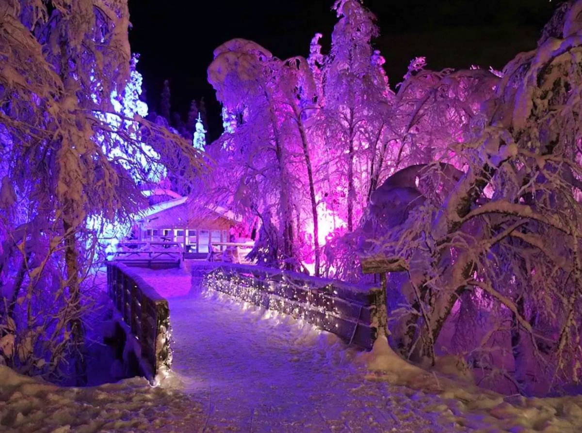 Step into the magical evening atmosphere of the Elves Village (Tonttula) in Levi, Finnish Lapland! This self-guided evening experience invites you to explore the hidden world of the elves under the glow of lanterns and the stars — and if you're lucky, even under the Northern Lights.