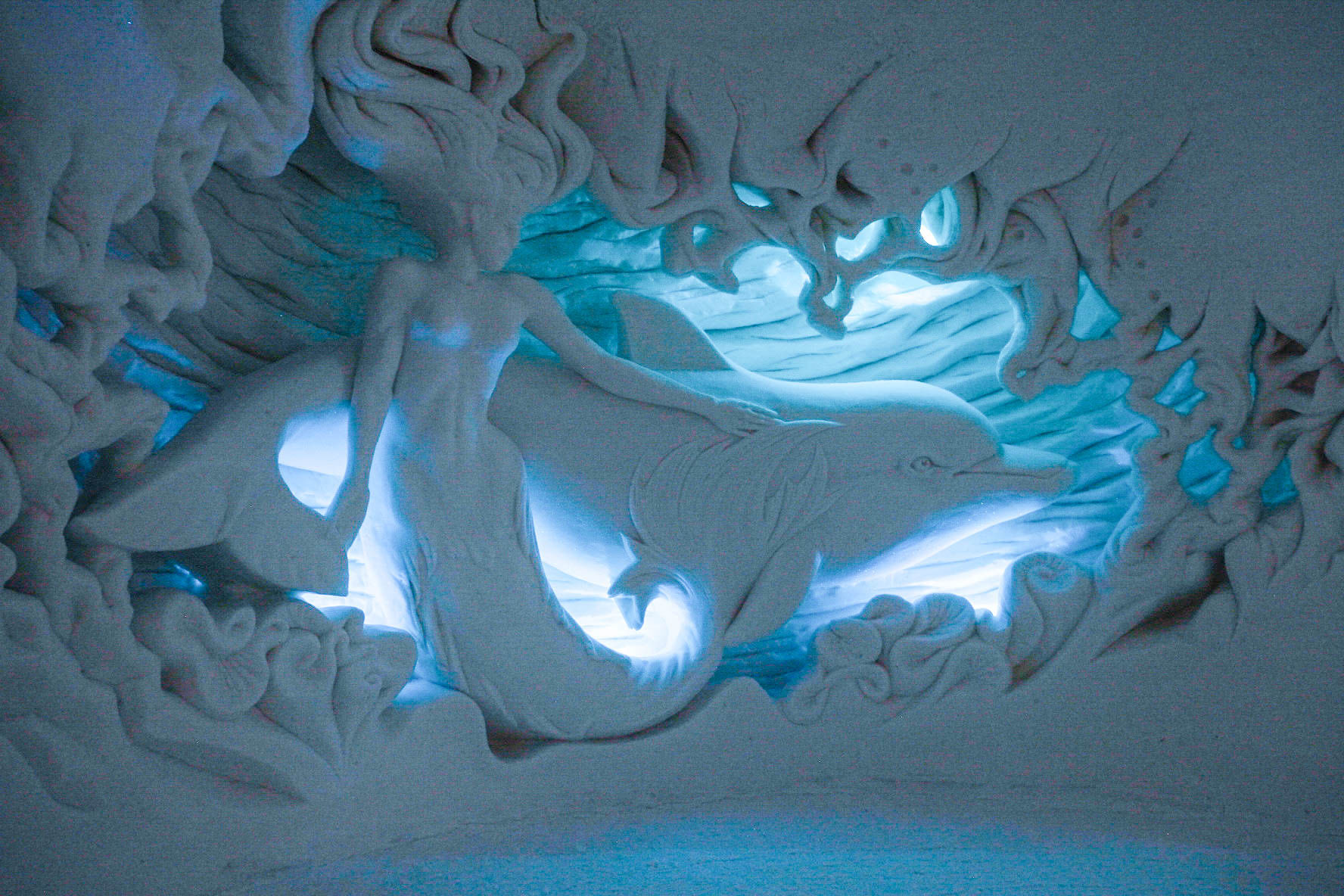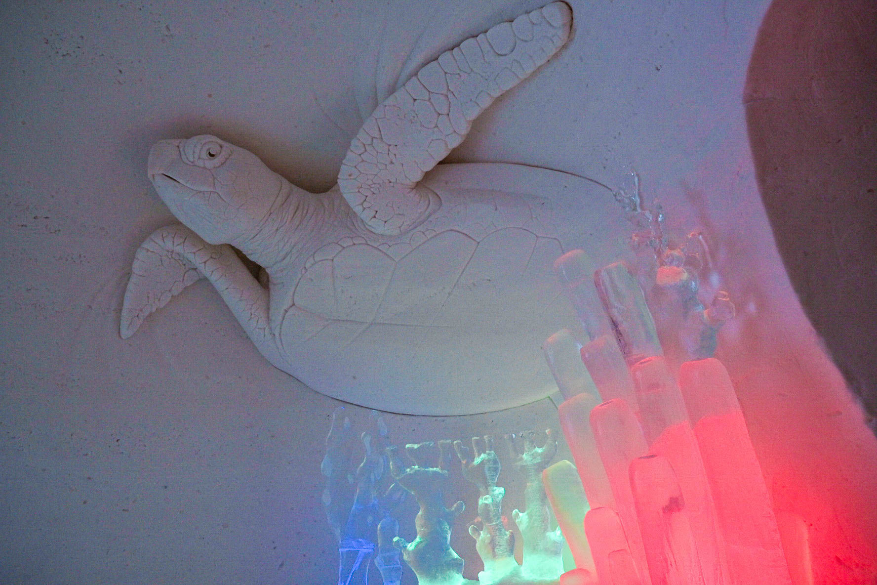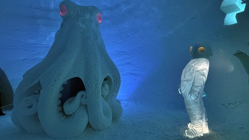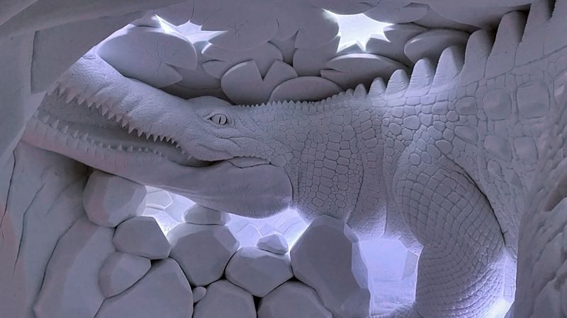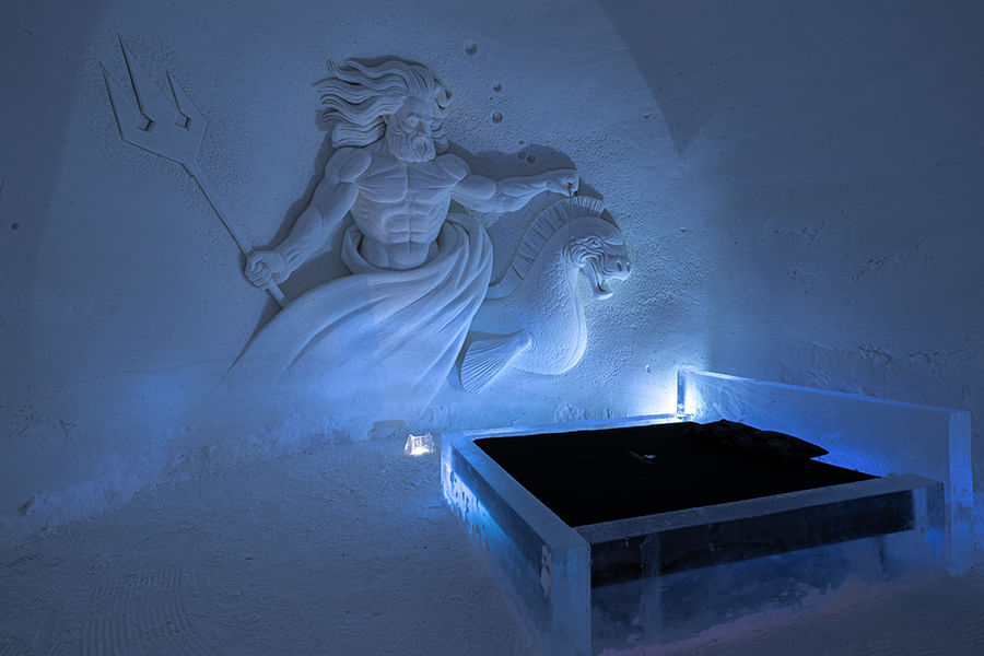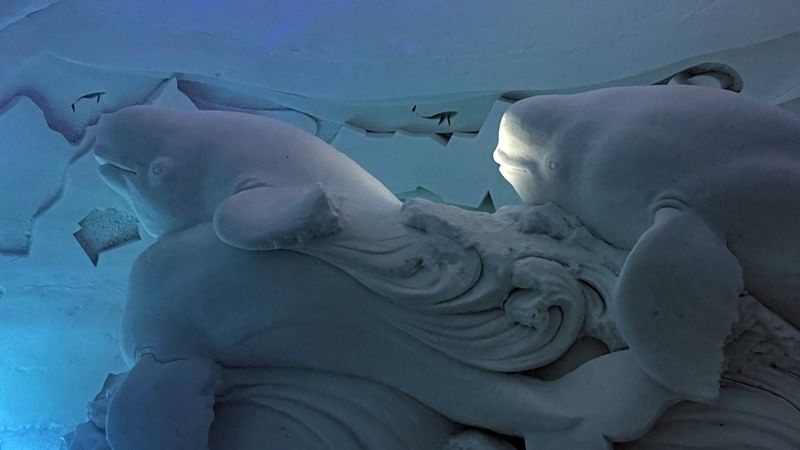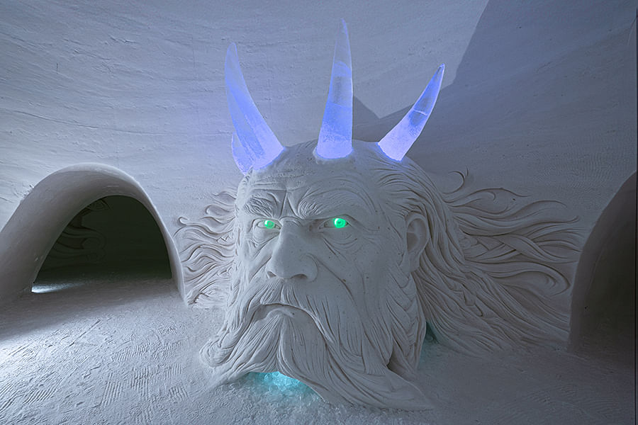 Upon arrival you will proceed straight for the dinner to the ice restaurant. Enjoy a unique and memorable 3-course dinner sat at ice tables and chairs in the beautiful Snow Restaurant sculpted from ice and snow. After the dinner you will have a guided tour around the Snow Village exhibition and experience the magical world of snow and ice. Snow Village is packed with beautifully decorated walls, rooms, sculptures and an ice bar. In the end of the guided tour a warming juice will be served in the ice bar. After that you still have time left to continue exploring the exhibition at your own pace before returning to the bus. The exhibition theme of the snow village changes every year. For two years, 2018 & 2019, it was Game of Thrones, which proved to be very popular and gained lots of media attention worldwide. In the following years, there were Macro World, Futuristic, Around the World, Nordic mythology and Underworld, the coming season will be different.