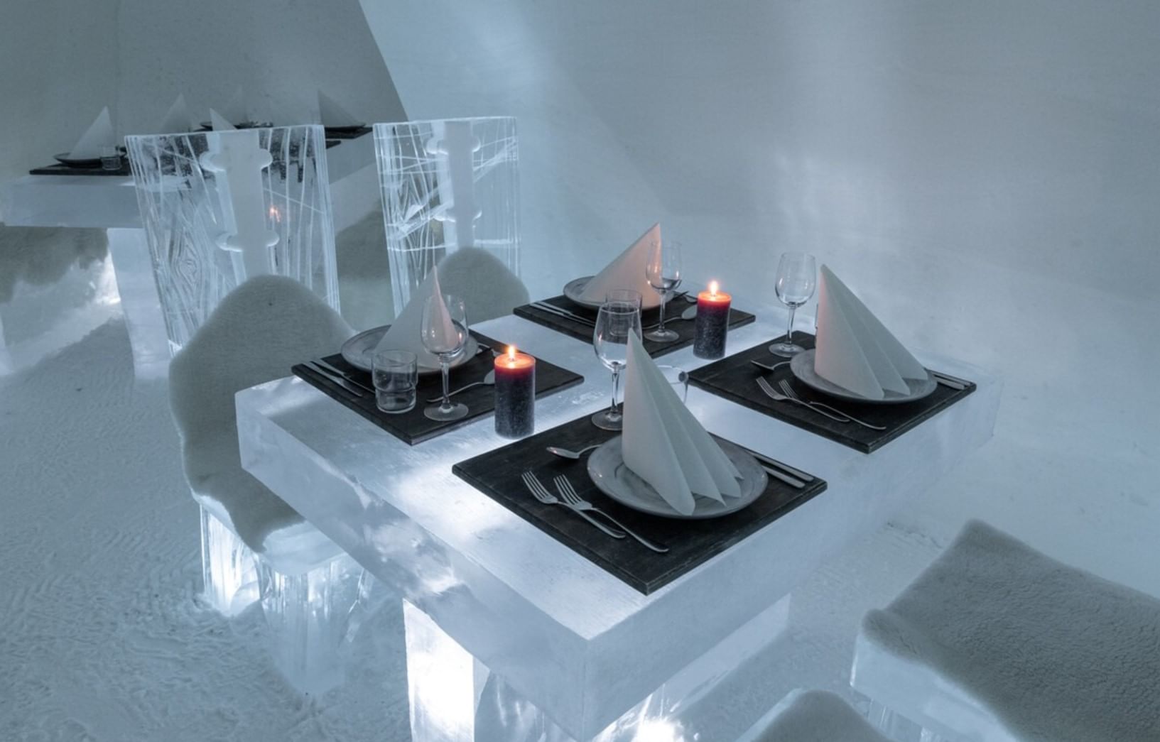 Experience the magical world of snow and ice, enjoy a unique 3-course dinner sat at ice tables and chairs.